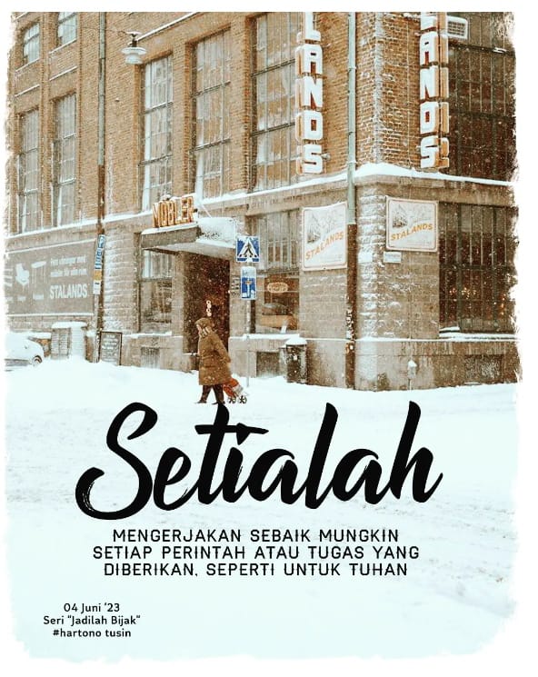 Mari, setialah mengerjakan sebaik mungkin setiap perintah atau tugas yang diberikan, seperti untuk Tuhan.