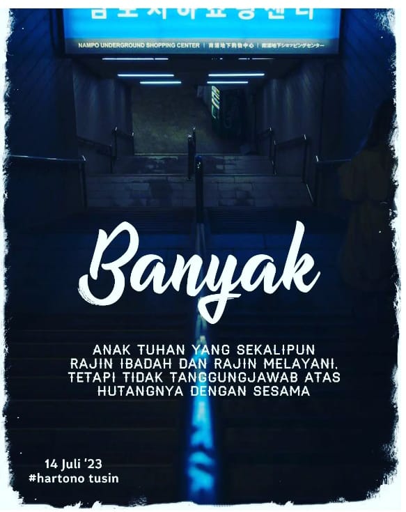 Namun, sayangnya banyak anak Tuhan yang sekalipun rajin ibadah dan rajin melayani, tetapi tidak tanggungjawab atas hutangnya dengan sesama.